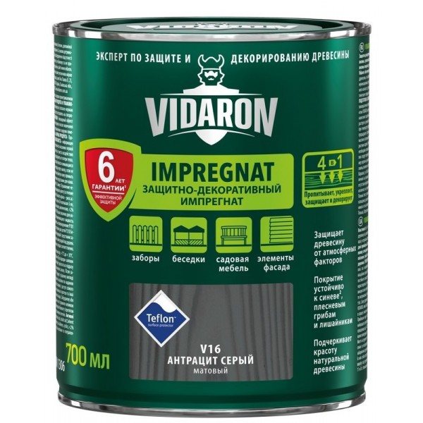 VIDARON V16 Імпрегнат просочення для дерева сірий антрацит (0,7 л)